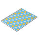 Repeat pattern of happy suns and sad rain clouds on a blue sky background for changeable springtime weather.