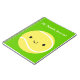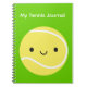 Un kawaii feliz bola de tenis amarilla en un fondo verde de campo. Ideal para los jugadores de tenis y los aficionados al deporte. Edite el texto para un nombre, evento o título.