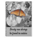 Este cuaderno muestra una foto de una mariposa monarca naranja en un color vívido que destaca sobre un fondo blanco y negro. Esta fotografía simple y sorprendente nos recuerda la belleza de la naturaleza. Un sólido cartel gris en la parte inferior del cuaderno incluye palabras que te inspiran a notar la belleza que te rodea. "La belleza siempre se puede encontrar en la naturaleza" puede ser rápida y fácilmente personalizada para satisfacer tus deseos.