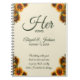 Presentamos nuestro exquisito cuaderno de boda con temática de girasol para ella, una elección perfecta para parejas que buscan un toque rústico y campestre. Este encantador cuaderno captura la belleza de los girasoles acentuados con encantadores toques verdes del bosque. Los girasoles vibrantes simbolizan la alegría, la felicidad y el amor floreciente, dando el tono perfecto para su día especial. El verde y exuberante color verde del bosque añade un toque de encanto rústico, que recuerda a los prados exuberantes y a la tranquilidad del campo. Portada con "Her Vows" que se puede personalizar con un nombre en lugar de "ella" y los nombres de la pareja y la fecha de boda. En la parte trasera hay una cita boda/matrimonio que se ajusta a la ocasión. Esto se puede reemplazar con tu cita romántica favorita. Este producto aparece en nuestra colección de Bodas de girasoles Forest Green y Gold Rustic y se empareja maravillosamente con el resto del conjunto.