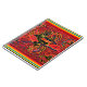 Hermoso diseño inspirado en antiguos tejidos Kuna Indian Mola. Este diseño proviene del folclore kuna, que simboliza que los bebés son llevados al mundo sobre las espaldas de los animales, como este ave gigante. (Muy parecida al folklore de la cigüeña estadounidense.) La mujer kuna se especializa en aplicaciones textiles que representan la vida diaria y el folclore de su vida tribal en las Islas San Blas de Panamá.