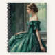 Una princesa con un vestido de gala verde oscuro, un diseño misterioso y elegante que evoca la magia de la naturaleza.