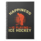 Un cuaderno de hockey con un jugador de hockey de silueta dice ¡La felicidad es jugar al hockey sobre hielo!