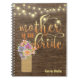 ¡La ayuda mantiene a la mamá organizada! El cuaderno rústico ofrece un fondo de madera oscuro fotorrealista, la secuencia se enciende y un tarro de albañil relleno con las flores en colores pastel. Personalizado.