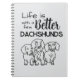 Aprovecha el encantador encanto de nuestra "Vida es Mejor con unos cuantos garabatos de Dachshunds". Deja que el adorable diseño y los preciados recuerdos caliente tu corazón, ya sea que estés en casa con tus queridos mascotas o que los dejes en casa mientras estás en el colegio —esperando el temido ojo lateral por dejarte atrás. [Cuto doodle de los tres tipos de cabello: el cabello alambrado, el cabello largo y el cabello liso. ¡He tenido los tres en mi vida! Arte original de Suzanne Hein Creations.]