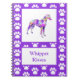 Lápiz blanco / mascota de Greyhound italiano las patas de perro lindo morado, rosa, amarillo y azul pueden ser personalizadas con una imagen de su propio perro. El regalo ideal para los amantes del perro, este portátil elegante pronto se convertirá en su compañero de viaje para anotar todos sus pensamientos y recuerdos con su querido amigo peludo.