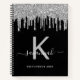 Cuaderno Láminas de purpurina de plata negra en monograma