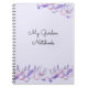 ¿Tomas notas mientras cuidas tu jardín y tus plantas? Aquí se presenta un diseño de bonito con espirales de lavanda con girasoles variados floridos sobre un suave fondo de color de lavanda.