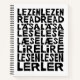 Huella en latino blanco y negro de la palabra "leer" en 8 idiomas diferentes (holandés, inglés, sueco, noruego, danés, francés, alemán y portugués).