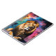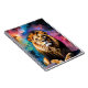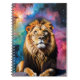 un león con un colorido fondo cósmico