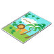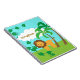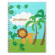 Este cuaderno personalizado tiene un diseño de los niños lindos el ofrecer de un león, de dos palmeras, de la nube blanca, de vides y de las hojas en un fondo verde azulado. El texto adaptable permite que usted añada un nombre.