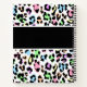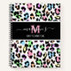 El moderno cuaderno de bocetos de artistas de impresión animal presenta un moderno patrón de impresión de leopardo de los arcoíris pastel, sus iniciales y un nombre con un elegante tipo de letra manuscrita.