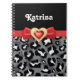 Cuaderno Leopardo blanco negro glamoroso, arco rojo y joyas