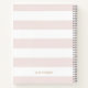 Bonito Portátil femenino y elegante con ilustraciones de peonías rosadas acuarelas, flores y follaje con tipografía de Relieve metalizado de oro falso y fondo de tiras rosadas de bebé. Este bloc de notas en monograma C con letra floral será perfecto como regalo personalizado.