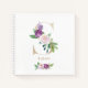 Portátil monograma floral S con letra femenina y bonito moderna. Este diseño presenta flores violetas color agua y acentos verdes con una tipografía de Relieve metalizado de oro falso sobre fondo blanco. Fácil personalización añadiendo un nombre o una frase corta. Este bloc de notas en monograma S de letra floral será perfecto como regalo personalizado.