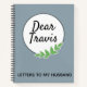 Este diario dulce de cuadernos presenta un fondo azul grisáceo y una corona de vegetación dibujada a mano, personalizada con el nombre de su marido. Abajo se lee "CARTAS A MI ESPOSO". También se puede utilizar el estilo de fuente y el color personalizar, así como el color de fondo.