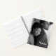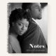 Este cuaderno elegante y moderno dice "Notas" en negrita, en blanco, con su foto personal cubriendo el frente. La cubierta trasera es blanca.
