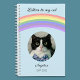 This heartfelt letters to my cat journal will give you a place to write your beautiful memories and even save some photos if you like or just write lovely letters to your feline friend. The journal features your cat's photo in the center with a muted rainbow overhead in a blue sky. The words, "Letters to my cat" appear above the rainbow. Your cat's name and dates can also be customized. The back side features the beautiful blue sky color along with a red heart with the words, "Forever in my heart." This would be a beautiful keepsake journal for you to cherish. Copyright Peaches the Tuxedo Cat