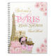Libro de invitados de una ducha de bebé en París con una adorable bebé de etnia en una pila de regalos en un hermoso fondo rosa y dorado de la Torre Eiffel. Puede añadir el texto de su elección y cambiar el color de fondo para personalizar este libro de bonito de París sobre la ducha de bebé y el registro de regalos. Este es un diseño impreso sin purpurina real, arcos, etc.