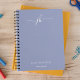 Cuaderno Libro de bocetos del monograma azul con nombre