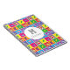 Para los niños que aman las artes y la artesanía, denles este cuaderno para que puedan esbozar sus obras. El cuaderno presenta un patrón hecho con diversos materiales artísticos y artesanales como lápiz de dibujo, tubos de pintura y botellas, pegamento, tijeras, marcador, lápices de colores y cinta de cinta. Colorido, luminoso y atractivo para ese pequeño artista. Personaliza con el nombre del niño y el inicial.