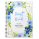 Este hermoso y elegante libro de invitados de la despedida de soltera presenta flores azules y azules marinos en acuarela con follaje en un marco geométrico dorado. El texto combina la escritura a mano y las fuentes serif para un estilo moderno y elegante. Esto es perfecto para una despedida de soltera rústica de primavera o verano.