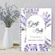 Un elegante fondo blanco decorado con un armazón de flores de lavanda violeta. Personalice y agregue un nombre y un título/evento. El Libro de invitados está escrito con un elegante guión marcado a mano.