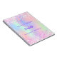 Un libro de invitados para una fiesta de cumpleaños de Quinceañera. Un fondo holográfico de moda en tonos rosa, violeta y verde menta. Decorado con confeti de color rosa. Personalice y añada un nombre, el nombre está escrito con letras de color púrpura de estilo moderno con letras a mano.