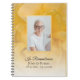 Invite a sus huéspedes a dejar una nota en recuerdo de su ser querido después de su paso por el elegante libro de invitados en homenaje al funeral de las flores de rosa amarillas. Este elegante cuaderno de homenaje a la vida, una celebración personalizado, incluye una fotografía floral de un flor de rosa amarillo con pétalos de rizo. Personalízalo con fecha de nacimiento y muerte, nombre e imagen del fallecido.