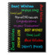 Qué maravilloso y divertido libro de memoria de graduación o álbum. En la portada, el texto se repite en diferentes tipos de letra y colores primarios sobre un fondo negro. Todos los derechos reservados © 2014 Alan & Marcia Socolik. Graduación