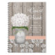 La carpeta con monograma del tarro de albañil del estilo rústico bonito con una flor blanca del hydrangea y una cerca y un damasco de madera de la antigüedad modelan el fondo del cordón y la cinta pálida coralina cosida del melocotón. Este boda o ducha o pares nupciales riegan el libro de visitas y el libro de los consejos se puede personalizar con las iniciales y el monograma de la novia y del novio en el tarro de albañil y modificar para requisitos particulares con los nombres de los pares felices. Perfeccione para un país, un cortijo, una fiesta de jardín o un boda o una ducha del estilo del corral. Diseñado por Chrissy H. Studios, LLC. Todos los derechos reservados.