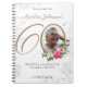 Portátil Floral 60th Birthday White Gold Photo Guestbook. Un libro de cumpleaños floral y botánico delicado y femenino. Cuenta con hermosas flores alrededor de la foto de la persona de cumpleaños, ¡todo con un toque de austeridad vintage! ¿Necesita ayuda con este diseño? ¡Envíe un mensaje al diseñador haciendo clic en el botón azul del mensaje que aparece debajo!