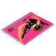 Echa un vistazo a la Mujer Maravilla de la Liga de la Justicia en forma de silueta, con su armadura y armas resaltadas en colores contrastantes. El logo de la Mujer Maravilla aparece en la parte superior derecha, y las curvas doradas giran alrededor de la Mujer Maravilla en la dirección que está saltando.