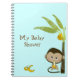Cuaderno adorable para que la mamá sea hecha en aquamarine, con los gráficos lindos del dibujo animado de un pequeño mono que come un plátano por una palmera. El texto de Brown lee mi fiesta de bienvenida al bebé y es adaptable leer lo que usted quiere. Perfeccione para enumerar los regalos recibidos, las notas especiales a la mamá para ser de sus huéspedes de la ducha y tanto más.