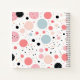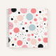 Lunares azules, rosas y negros de varios tamaños sobre fondo blanco.