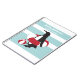 Un pingüino está de pie con un tubo interior rojo y blanco y una pelota de playa con un fondo azul claro y blanco. Este lindo animal de dibujos animados con texto personalizado hace un cuaderno lindo y único para niños.