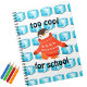 Agrega un toque de diversión a los días escolares de tus hijos con este cuaderno, que presenta un lindo pingüino de dibujos animados con un suéter rojo-naranja lanudo y un patrón general de cubos de hielo azules. El texto en la parte frontal dice "demasiado genial para la escuela". Divertido, contemporáneo y trendy, este cuaderno es ideal para el regreso a clases y seguro que pondrá una sonrisa en el rostro de tu hijo.