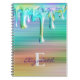 Cuaderno monograma con gotas de helado de metal con gradiente cepillado lindo bonito presenta moderno metal con gradiente cepillado de azul verde púrpura y gotas holográficas de helado. Hermosa, moderna y genial cubierta para chicas que disfrutan diseños elegantes y brillantes. Muestra tu estilo personal, luce elegante, de moda y siéntete con estilo con un diseño único en el cuaderno o personalízalo sobre otro producto de tu elección. Agrega tu nombre con una tipografía de caligrafía moderna y genial. Es la idea de regalo perfecta para un cumpleaños de 16, boda, despedida de soltera, aniversarios, baby shower o fiestas de soltera, día de San Valentín o como regalo en general.