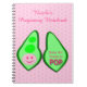 Este increíble cuaderno presenta una imagen gráfica de un ápice verde que contiene 2 guisantes verdes y un gran guisante rosa. La gran guisante rosa tiene una cara bonita con ojos y boca. Al otro lado de la vaina de arveja en un texto rosa más oscuro dice "Niña bebé lista para pop". Al fondo hay un grupo de pequeños guisantes rosas. Hay texto personalizado para que pueda incluir el nombre de la futura madre y un mensaje.
