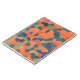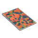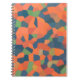 Cuaderno de espiral llamativo, apto para ser utilizado como diario, con un patrón abstracto en colores vibrantes - Naranja flamante, azul oscuro y verde profundo, de un diseño digital de Judy Adamson