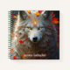 Un lobo mágico blanco sereno rodeado de los tonos vibrantes del otoño. El resplandor etéreo del lobo simboliza sabiduría, fuerza y magia, inspirándote a escribir tus pensamientos, sueños e ideas creativas.