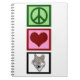 Un signo de paz verde, corazón rojo y un lobo gris. Un regalo de bonito para alguien que ama a los lobos.