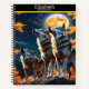 Cuaderno Lobos gritando en una luna resplandeciente en un c