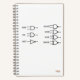 A practical dot-grid notebook designed for engineers, students, and electronics enthusiasts, featuring a clean white background with a printed reference list of basic logic gates (AND, OR, NOT, NAND, NOR, XOR, XNOR) on the bottom margin or back cover.