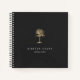 Portátil de moda personalizada en espiral para su salón o negocio de peluquería con dos líneas de texto personalizado con letras blancas clásicas, sobre un rico fondo gris de carbón vegetal adornado con un ilustracion tropical de palmeras en falso Relieve metalizado dorado. Personalice su nombre o nombre de salón o su elección de texto personalizado.
