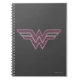 El logo clásico de la Mujer Maravilla se rellena con damas rosas y negras y diseños de malla.