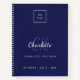 Un fondo azul marino clásico. Personalice y agregue su logotipo de negocio, iniciales de monograma, nombre y título. Letras blancas y azules. El logotipo de su empresa, tanto en la parte delantera como en la trasera.