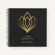 Moda y cuaderno elegante con un falso ilustracion de Relieve metalizado dorado de flores de loto sobre un fondo gris de smokey. Personalice con dos líneas de texto personalizado debajo. Colección de negocios del logotipo de Coordenadas a Gold Lotus