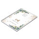 Eucalipto verde y follaje dorado falso y polvo. Elegante fondo blanco. Personalice y agregue el logotipo de su empresa, iniciales de monograma, nombre y un texto.