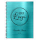 Cuaderno Logotipo empresarial Faux Turquesa Azul Holográfic